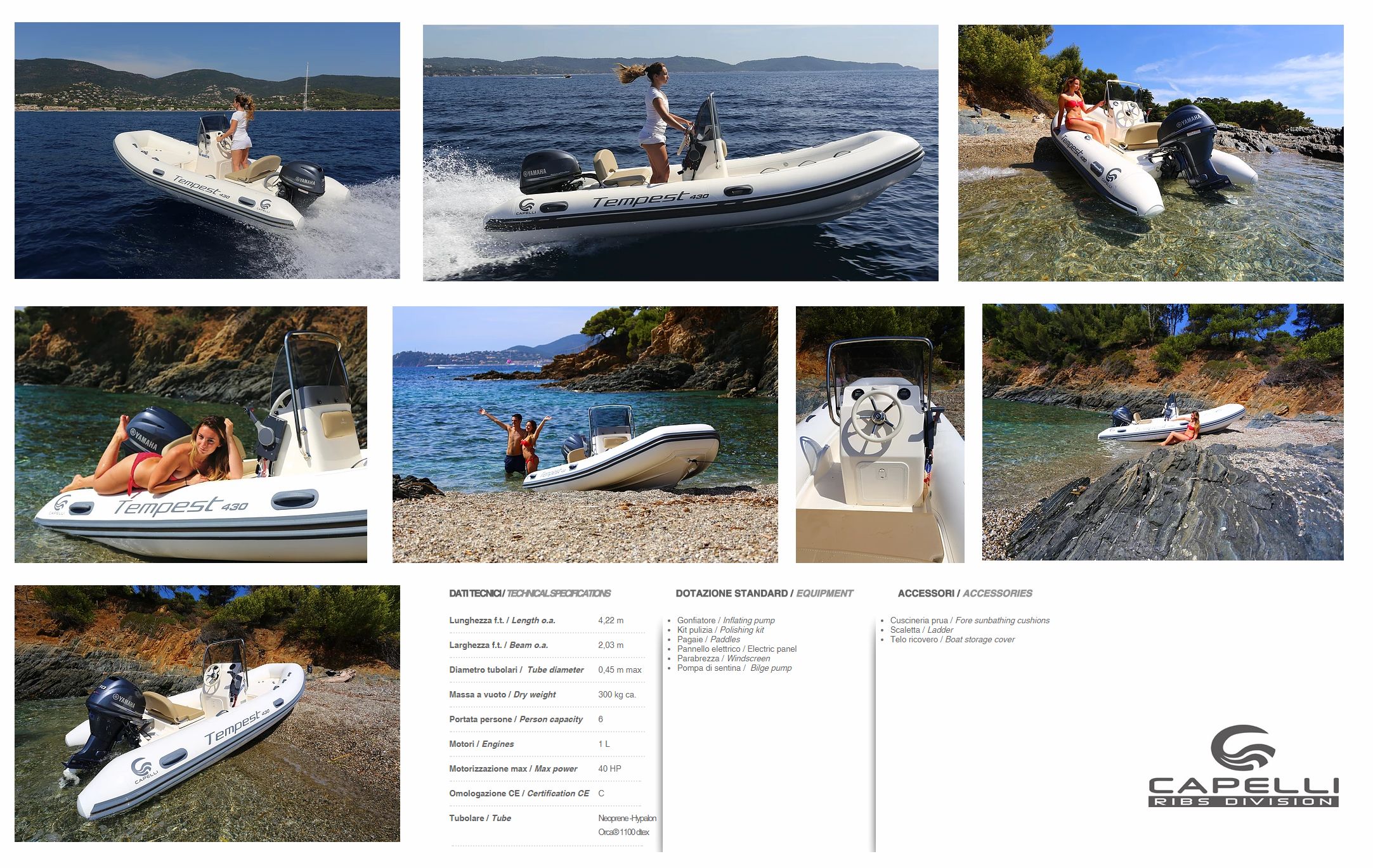 | detalii: ambarcatiune gonflabila cu chila rigida CANTIERI CAPELLI Tempest 430; v.detalii pe "click"; |