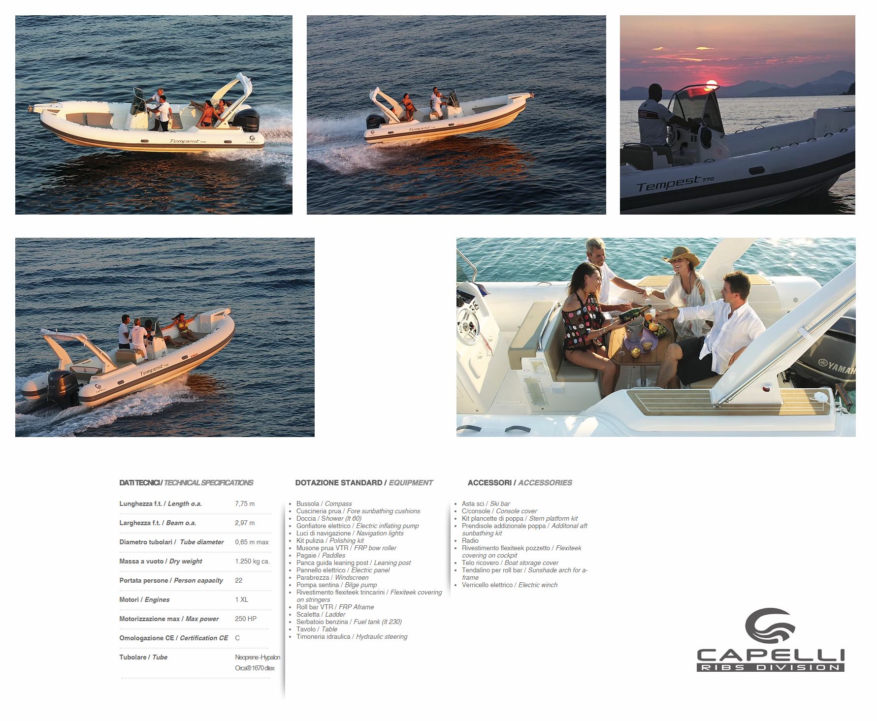 | detalii: ambarcatiune gonflabila cu chila rigida CANTIERI CAPELLI Tempest 775; v.detalii pe "click"; |