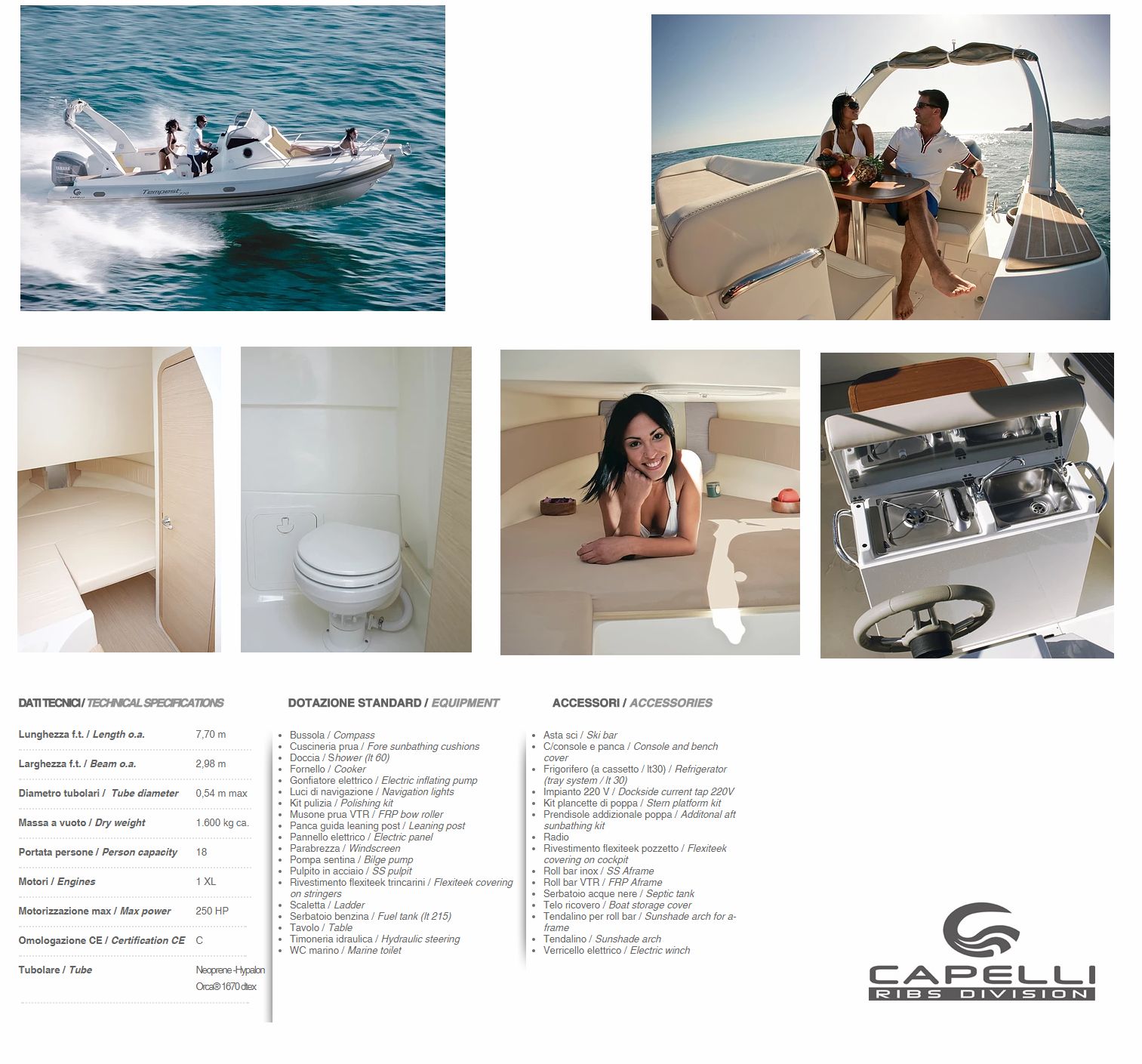 | detalii: ambarcatiune gonflabila cu chila rigida CANTIERI CAPELLI Tempest 770 WA; v.detalii pe "click"; |