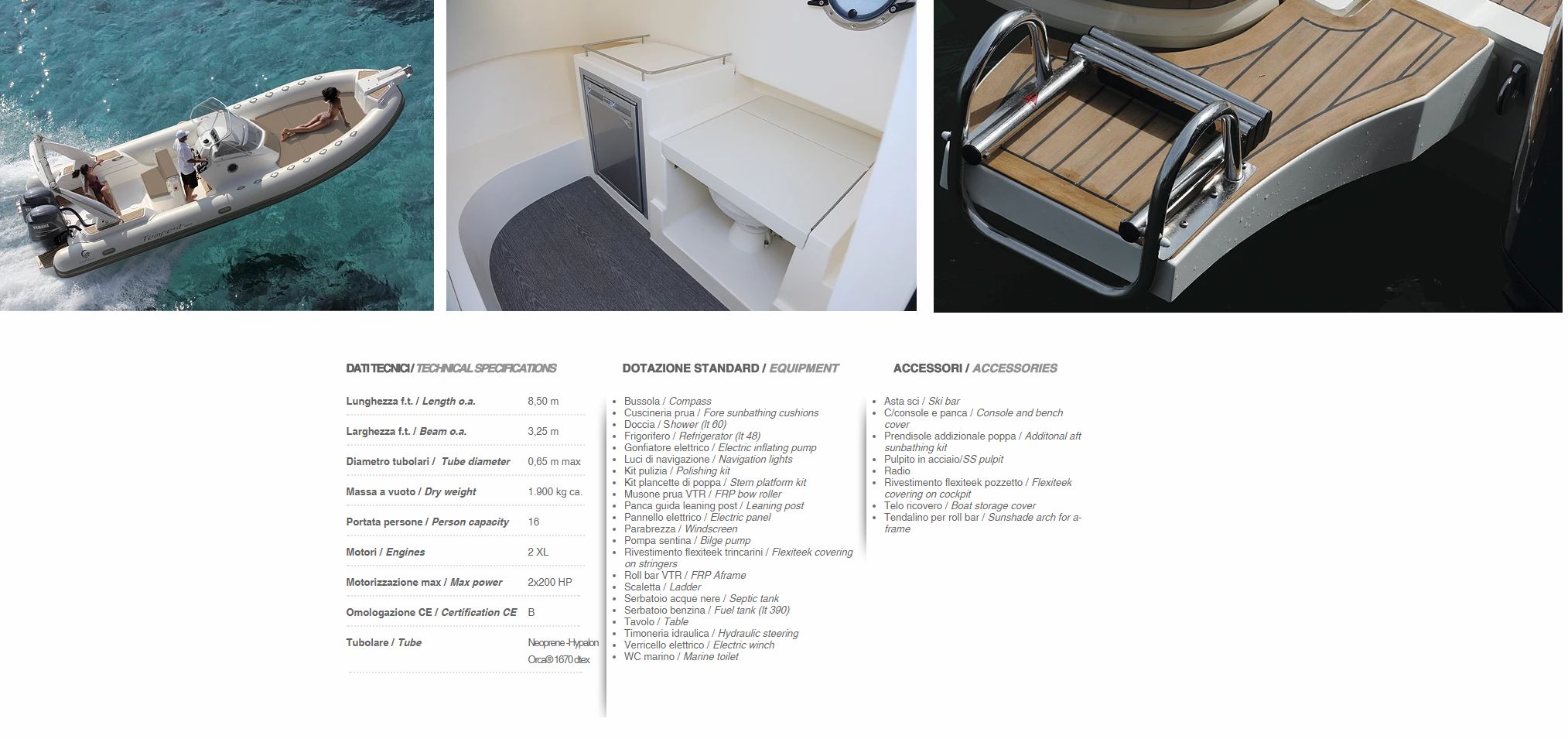 | detalii: ambarcatiune gonflabila cu chila rigida CANTIERI CAPELLI Tempest 850 WA; v.detalii pe "click"; |